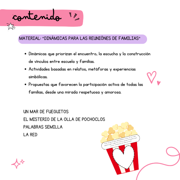 - Dinámicas que priorizan el encuentro, la escucha y la construcción de vínculos entre escuela y familias.