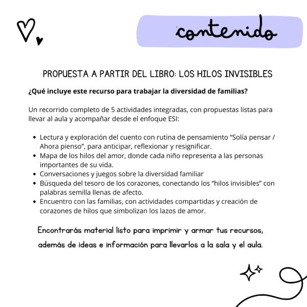 A partir del cuento “Los hilos invisibles” de Patricia Karst, las propuestas invitan a reflexionar sobre el amor, los lazos que nos unen y la importancia de reconocer que todas las familias son únicas y valiosas.